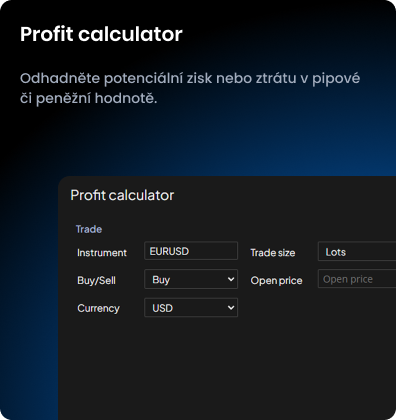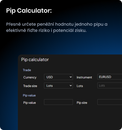 Spočítejte si pip hodnotu, margin a zisk/ztrátu bez přepínání nástrojů. Stačí zadat velikost pozice, ceny a páku.