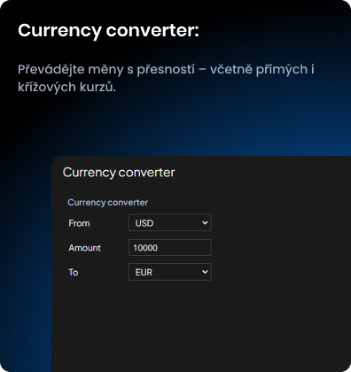 Převádějte měny okamžitě podle aktuálních tržních kurzů – bez potřeby externích nástrojů.