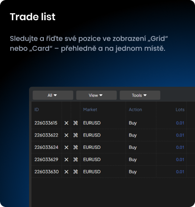Sledujte několik trhů současně díky kompaktnímu zobrazení – optimalizováno i pro mobilní zařízení. Neunikne vám žádná příležitost.