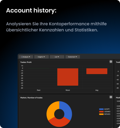 Sieh auf einen Blick, welche Trades und Märkte am erfolgreichsten (oder verlustreichsten) waren – dargestellt in übersichtlichen Balkendiagrammen