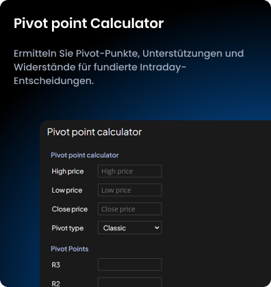 Nutze das Fibonacci-Tool für Retracements/Extensions und den Pivot-Rechner zur Bestimmung wichtiger Unterstützungs- und Widerstandszonen.