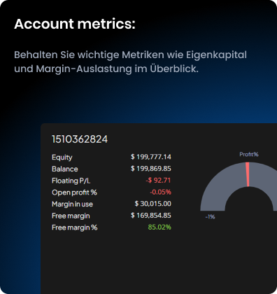 Behalte deine Kontobilanz im Blick mit einem interaktiven Liniendiagramm – erkenne sofort Einzahlungen, Wachstum und Drawdowns.