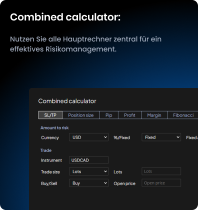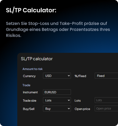 Nutze SL/TP- und Volumenrechner zur Begrenzung deines Risikos. Definiere es als festen Betrag oder Prozentsatz – die Tools liefern exakte Werte.