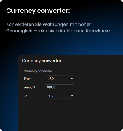 Rechne Beträge sofort zwischen Währungen um – auf Basis aktueller Marktpreise. Externe Tools sind überflüssig.