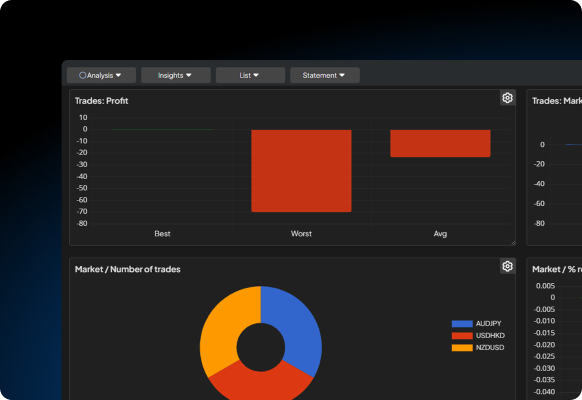 See which trades and instruments delivered your best and worst results. Use bar charts and market-based summaries to understand where your edge lies—or doesn’t.