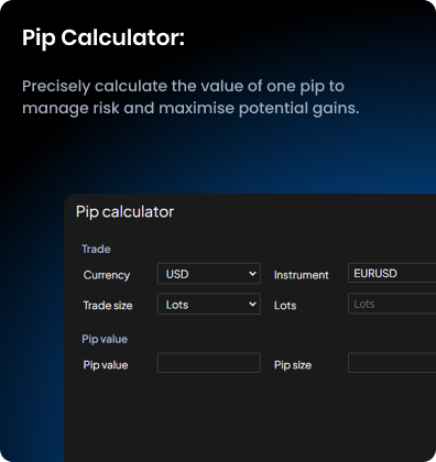 Quickly calculate pip value, margin, and potential profit or loss—all in one place. Input key trade details like lot size, entry and exit prices, and leverage to receive instant and precise financial insights.