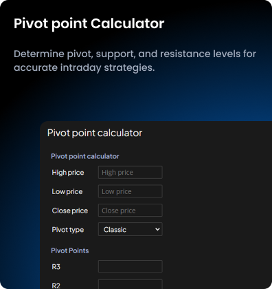 Sharpen your strategy with advanced technical levels. Use the Fibonacci Calculator to pinpoint retracements and extensions, and the Pivot Point Calculator to generate key support and resistance levels based on your preferred method.