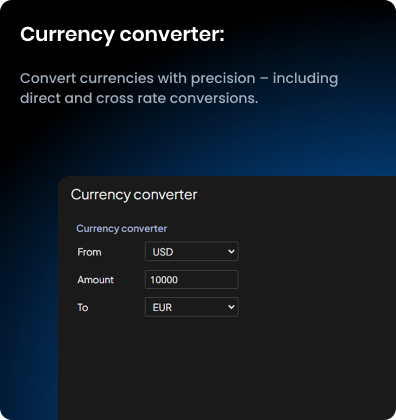 Stay in control when trading across markets with the integrated Currency Converter. Access real-time exchange rates to calculate conversions accurately and effortlessly—no need for external tools.