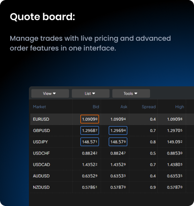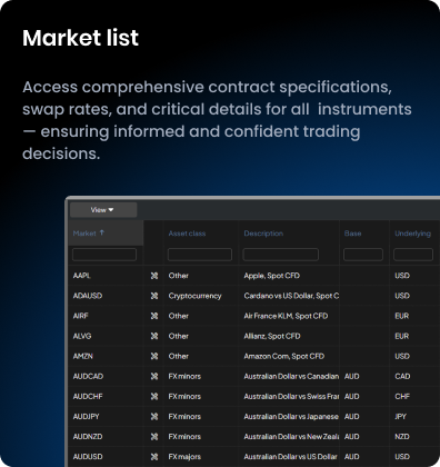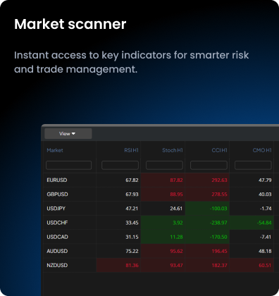 Monitor several markets at once with a compact layout optimised even for mobile use. Stay alert to opportunities without switching screens or losing focus.