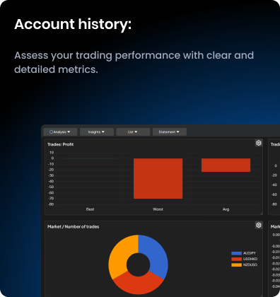 Understand your win/loss ratio instantly with clear, colour-coded charts. Use the duration vs. profit scatter plot to spot patterns across different markets and timeframes.