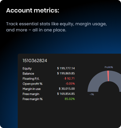 Track your account balance over time with an interactive line chart. Quickly identify deposit patterns, drawdowns, and growth trends to assess your overall performance.