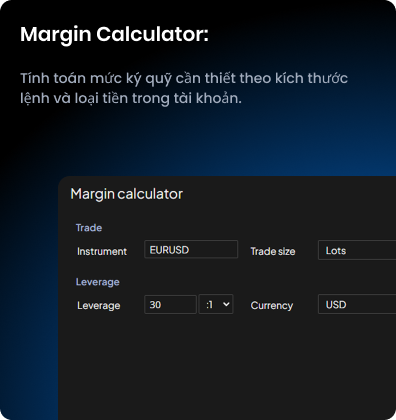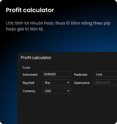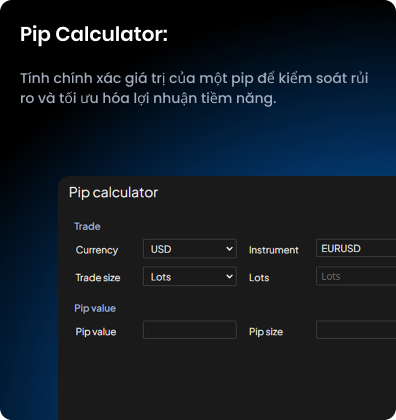 Tính giá trị pip, ký quỹ và lãi/lỗ tức thì. Nhập khối lượng, giá và đòn bẩy để nhận kết quả chính xác ngay lập tức.