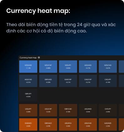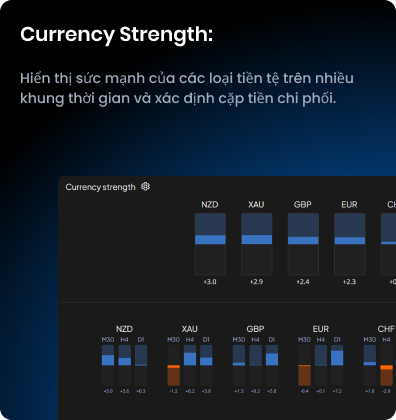 Dễ dàng xác định đâu là đồng tiền mạnh hoặc yếu nhất. Theo sát nhịp thị trường mọi lúc.